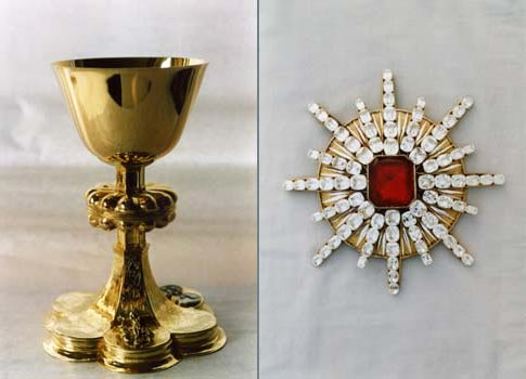 | Frühbarocker Kelch, Kuppa ersetzt, Restaurierung von Fuß und Nodus | Restaurierung und Ergänzung der Silberfassungen am Krönungsreitzeug Augusts des Starken, Rüstkammer Dresden |